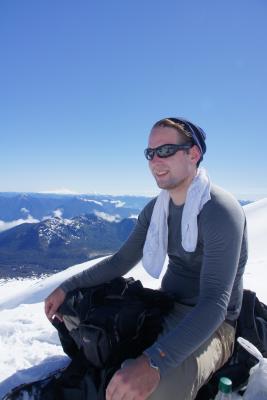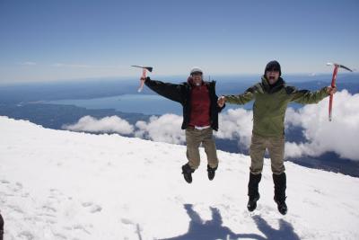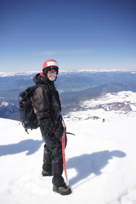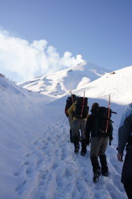 Es ging 5 Stunden bergan, ueber eine vergletscherte Flanke bis an den Kraterrand.